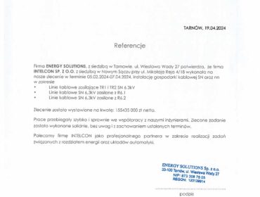 Firma ENERGY SOLUTIONS, z siedzibą w Tarnowie ul. Wiesława Wody 27 potwierdza, że firma...